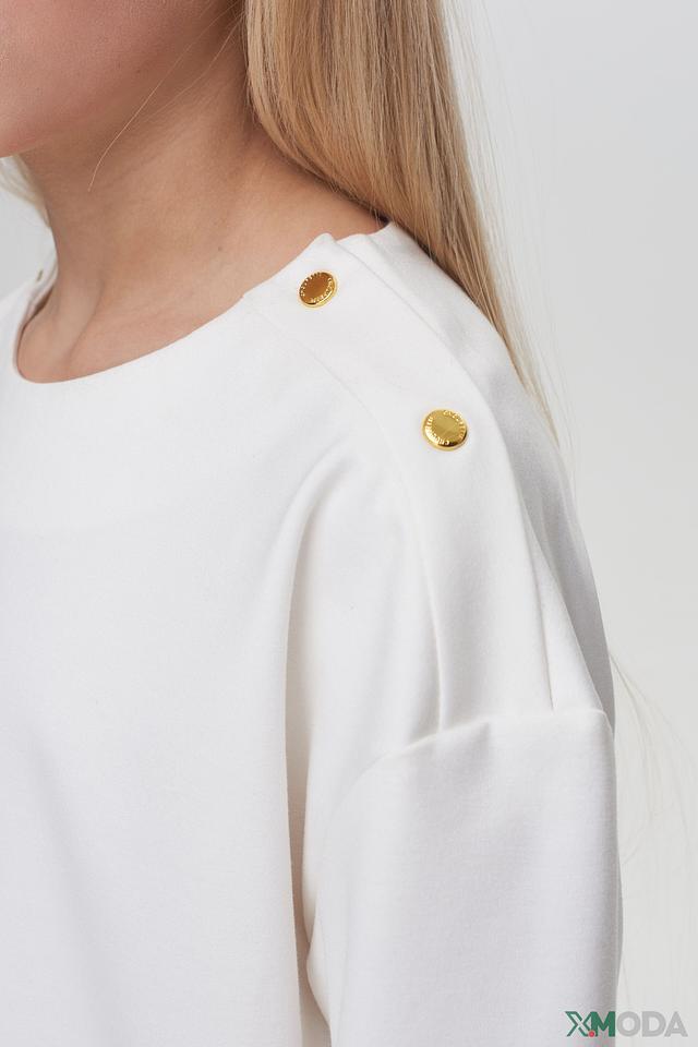 Эта очаровательная блуза от Choupette станет прекрасным выбором для юной модницы. Блуза выполнена в белом цвете и украшена четырьмя золотистыми пуговицами на плечах, что придает ей нарядный и элегантный вид.