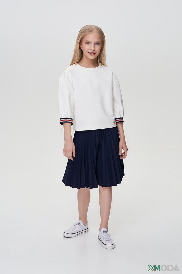 Белая блуза Choupette для девочки с оригинальным дизайном. Модель выполнена из мягкой ткани с добавлением вискозы, украшена золотистыми пуговицами на плечах и яркой полоской на рукавах. Состав: вискоза 62%, нейлон 33%, полиуретан 5%