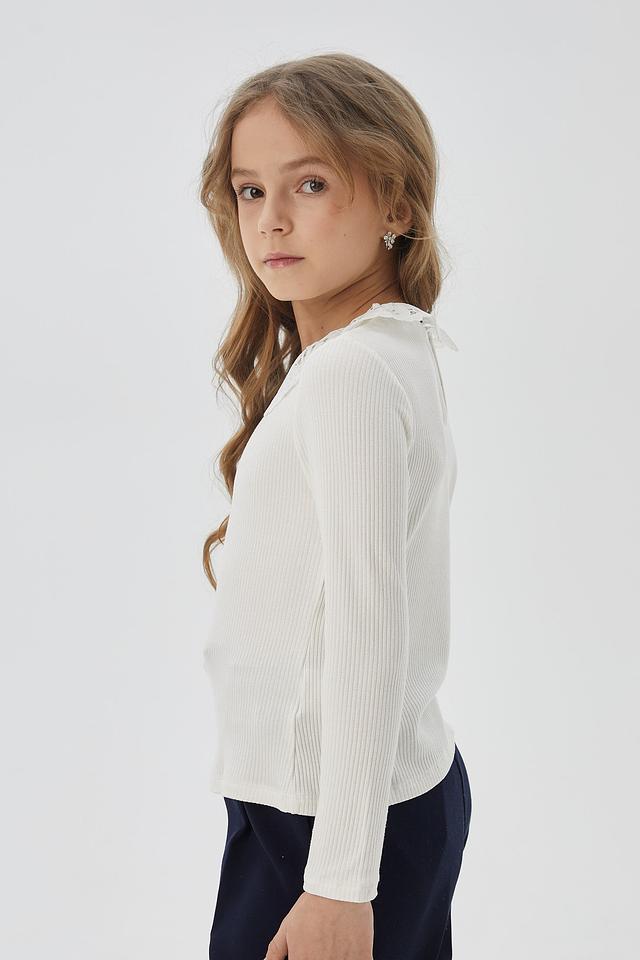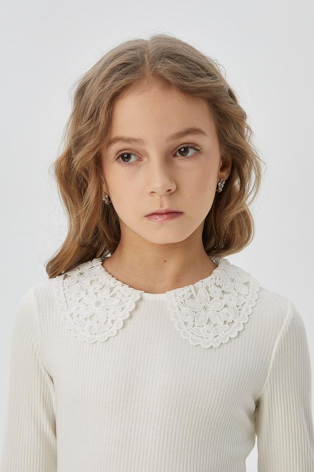 Белая блуза от Choupette с изящным кружевным воротником станет отличным дополнением к школьному образу. Модель выполнена из приятного на ощупь трикотажа в рубчик и имеет длинные рукава. Состав: вискоза 96%, полиуретан 4%