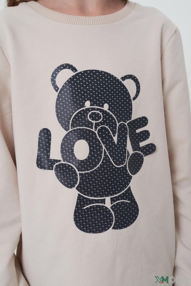 Детский джемпер Choupette бежевого цвета с принтом медведя и надписью "LOVE" – удобная и стильная модель для маленьких модниц. Изготовлен из мягкого хлопка с небольшим добавлением полиуретана для комфорта и долговечности. Состав: хлопок 92%, полиуретан 8%