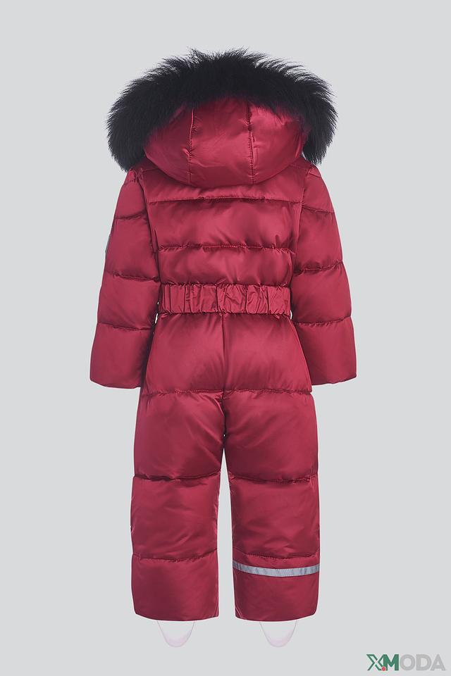 Комбинезон изготовлен из высококачественного полиамида, обеспечивающего надежную защиту от ветра и влаги. Подкладка выполнена из 100% хлопка, что делает его приятным к телу и комфортным в носке. Капюшон украшен мягким мехом, который защитит от мороза и придаст образу очарование.