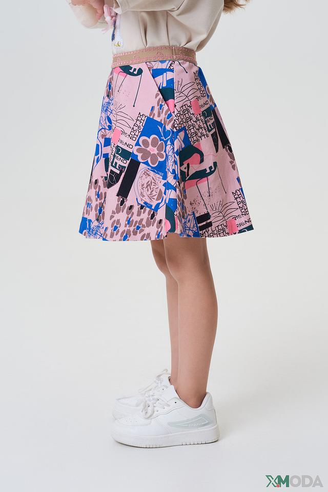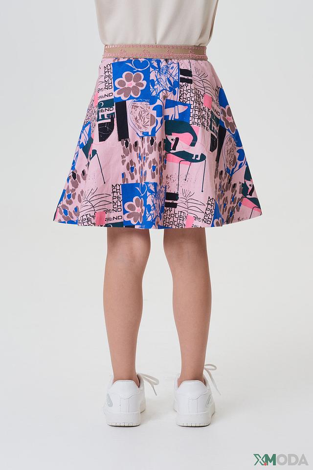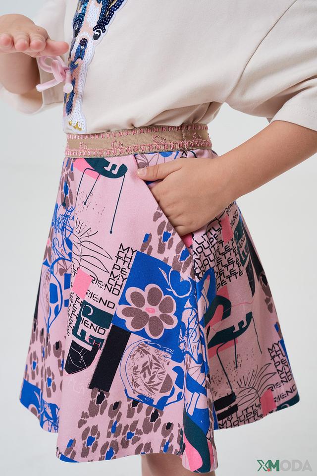 Юбка имеет яркий и запоминающийся принт, сочетающий в себе различные цветочные мотивы, геометрические фигуры и абстрактные элементы. Благодаря своему дизайну, она легко сочетается с различными топами и блузками, позволяя создавать разнообразные образы.