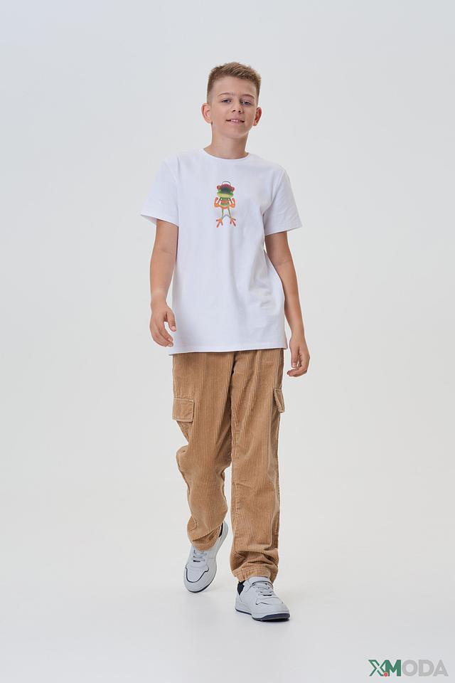 Основным акцентом футболки является яркий и забавный принт с изображением лягушки. Дизайн футболки выполнен с вниманием к деталям, что делает её привлекательной для юных модников.