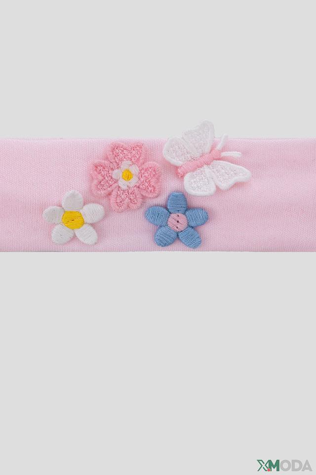 Розовая повязка на голову от Choupette, украшенная аппликациями в виде цветов и бабочки, станет милым дополнением к детскому образу. Изготовлена из мягкого 100% хлопка, обеспечивая комфорт при носке. Состав: хлопок 100%