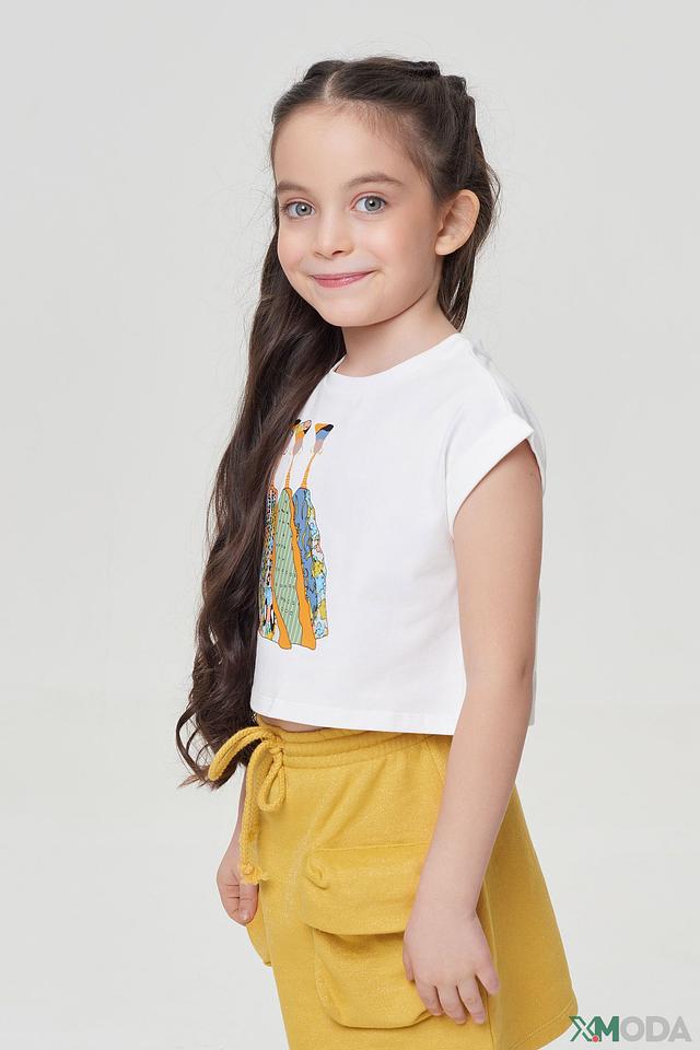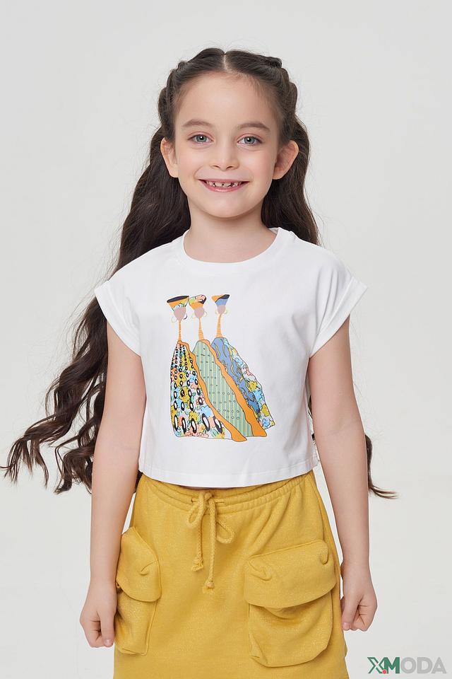 Эта футболка станет любимой вещью вашей девочки, она идеально сочетается с юбками, шортами и брюками, создавая стильные и удобные образы для повседневной носки или особых случаев.