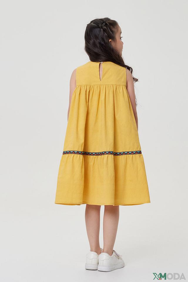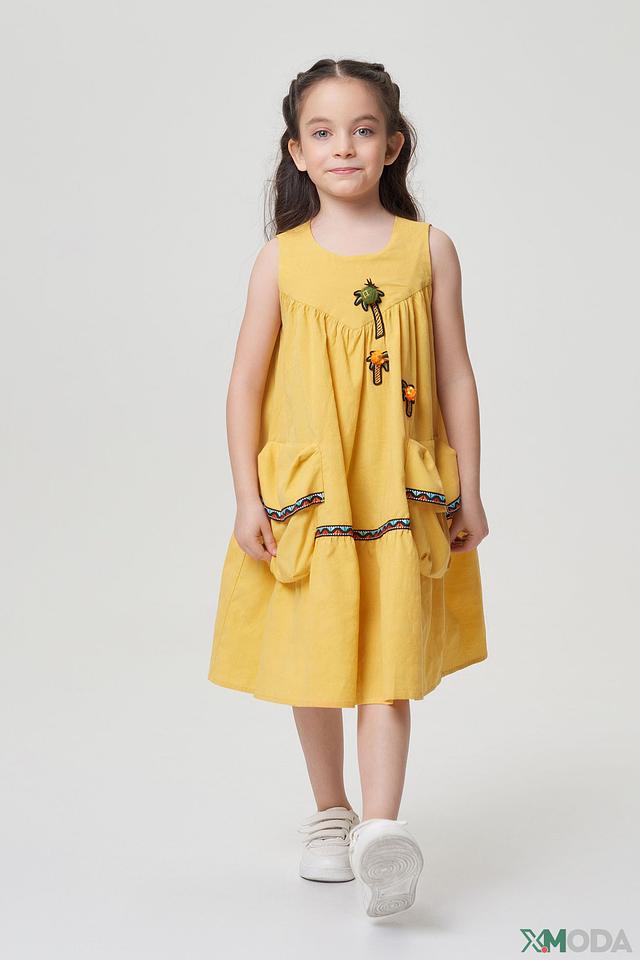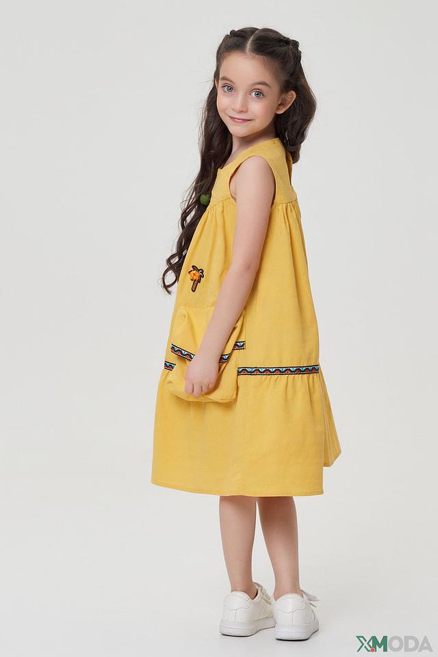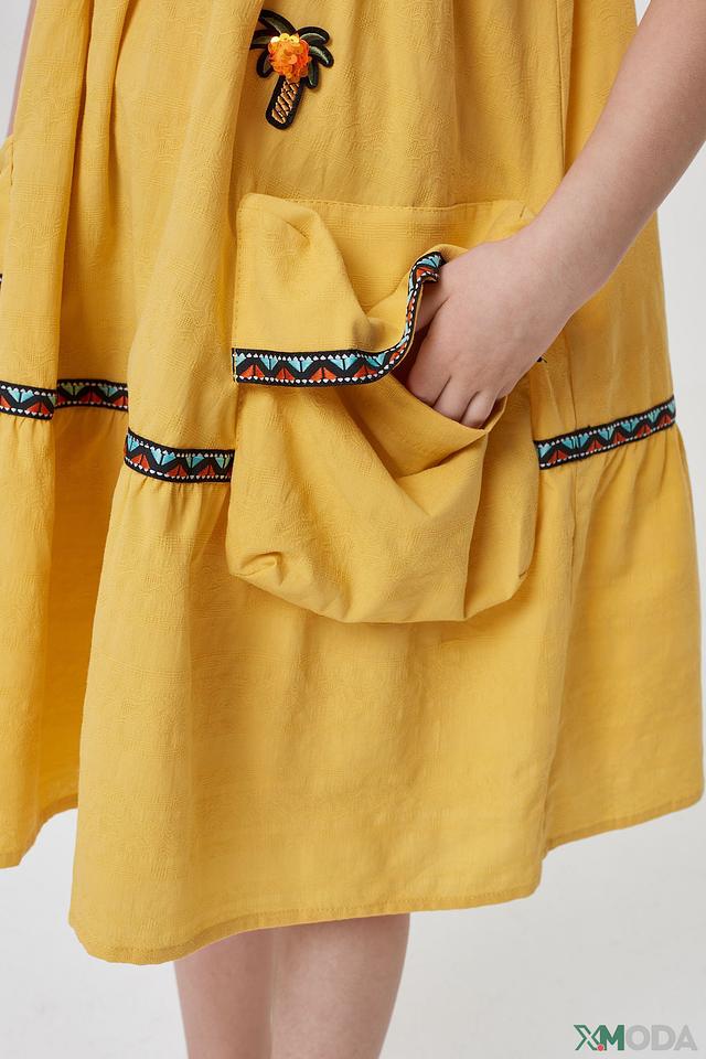 Платье Choupette для девочки, горчичного цвета, с яркой вышивкой и удобными карманами. Модель выполнена из натурального хлопка, обеспечивающего комфорт и свободу движений. Состав: хлопок 100%
