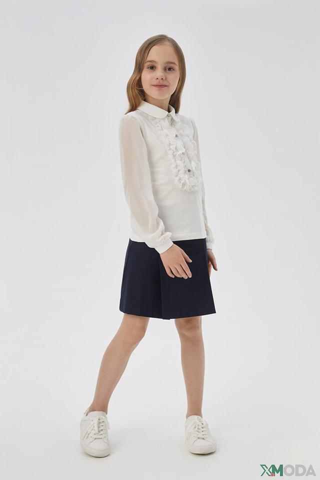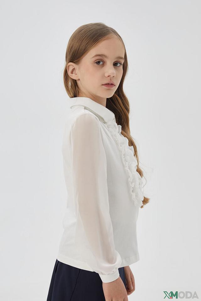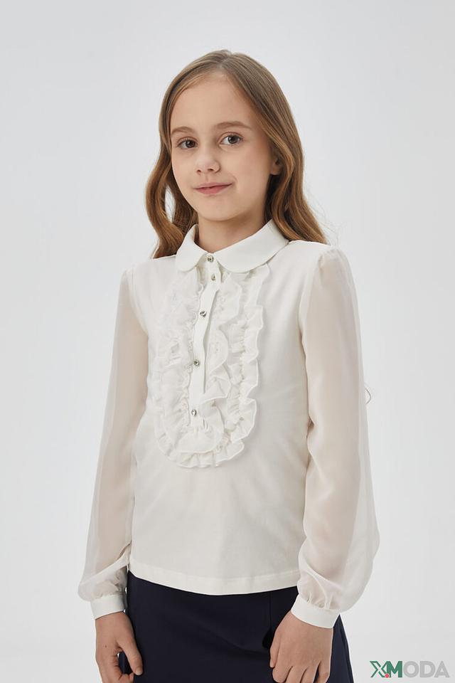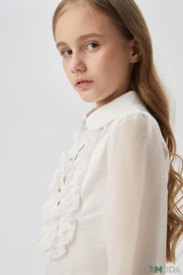 • Изысканный дизайн. Декоративные вертикальные сборки и блестящие стразы на пуговицах делают эту школьную блузку нарядной, подчеркивая классический стиль и добавляя праздничности.