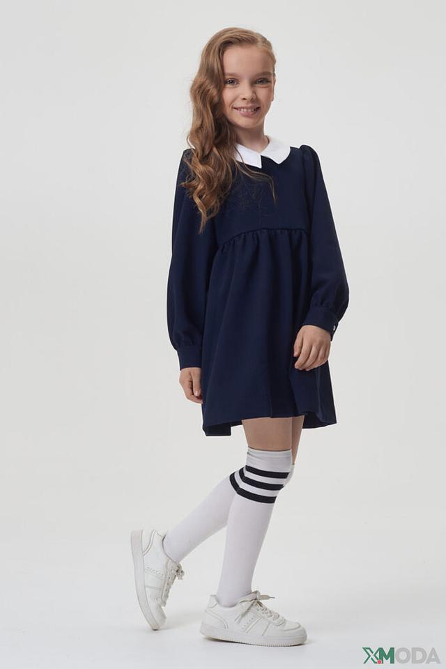 Синее платье от Choupette – отличный выбор для школьницы. Модель выполнена из мягкой ткани с добавлением вискозы, имеет удобный крой и стильный воротничок. Идеально подходит для повседневной носки. Состав: полиэстер 63%, вискоза 32%, полиуретан 5%