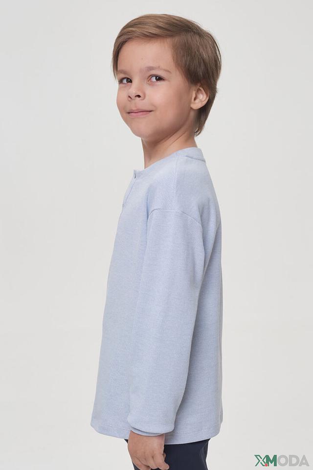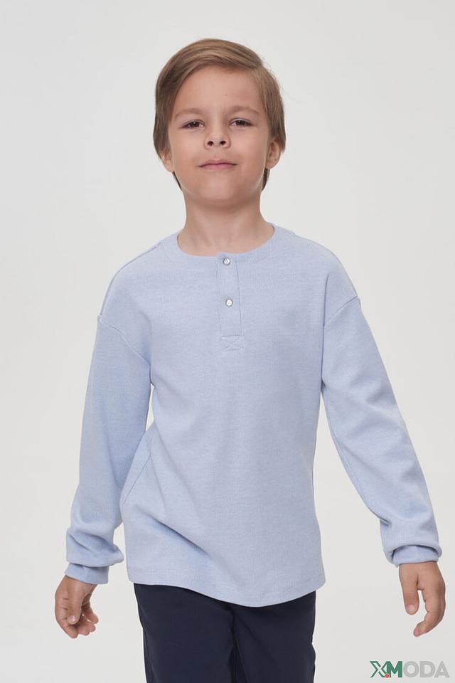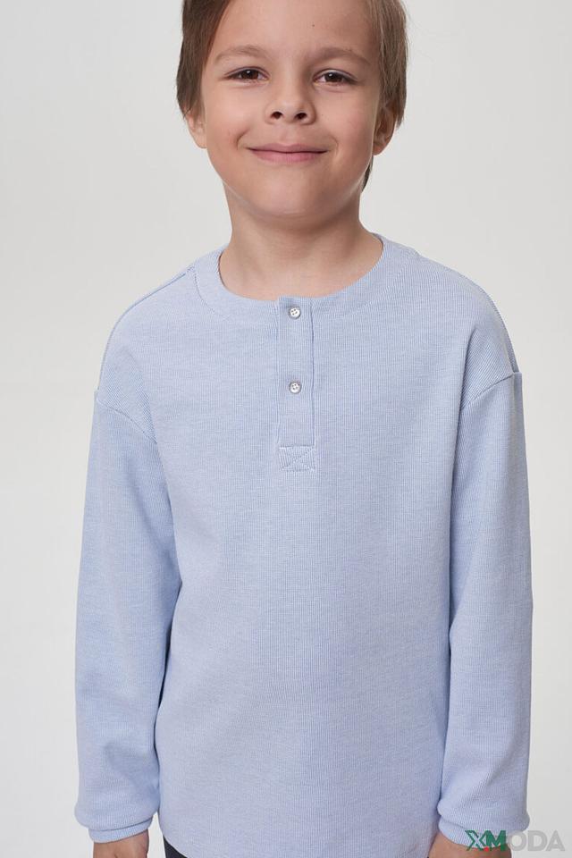 Футболка имеет длинные рукава и удобную круглую горловину. Планка с пуговицами придает модели аккуратный и опрятный вид. Текстурированная ткань добавляет футболке интересный визуальный эффект.