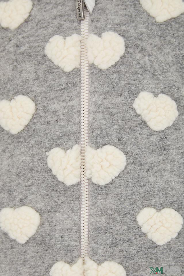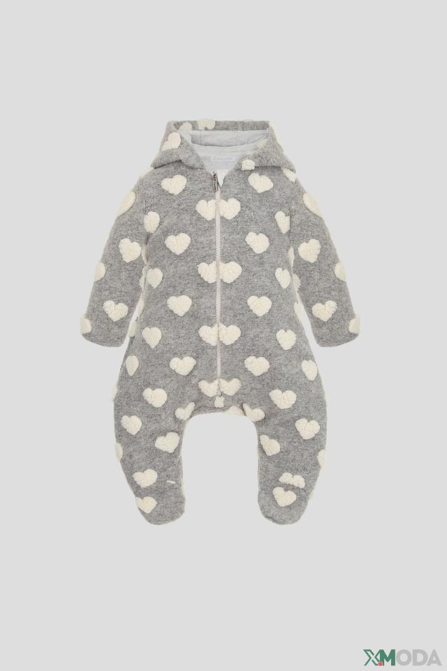 Комбинезон Choupette для девочки серого цвета, украшен белыми сердечками. Изготовлен из мягкого полиэстера, с подкладкой из 100% хлопка для комфорта. Состав: полиэстер 100%, Состав_подкладка хлопок 100%