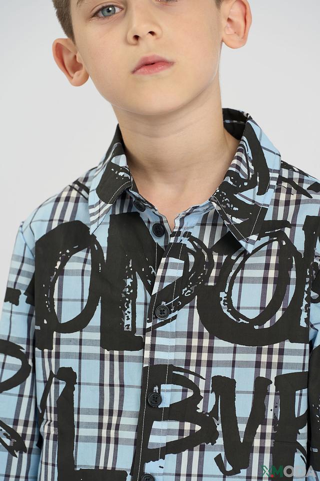 • Стильный дизайн: Рубашка для мальчика выполнена в модном сочетании клетки и буквенного принта, делая ее ярким акцентом в детском гардеробе. Современный крой обеспечивает комфортную посадку.