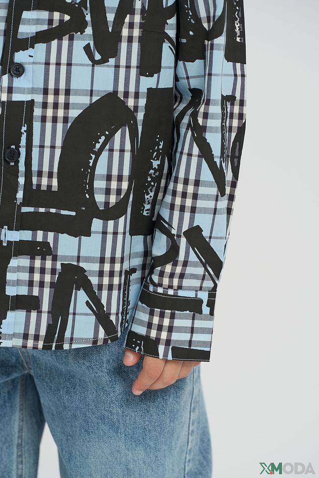 Рубашка Choupette голубая в клетку с черными буквами для мальчика