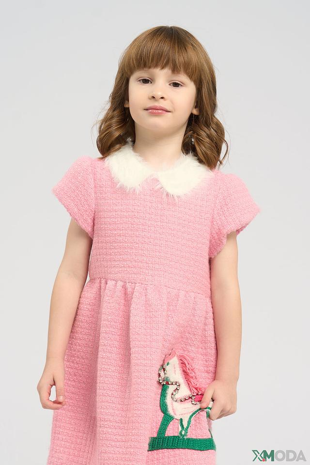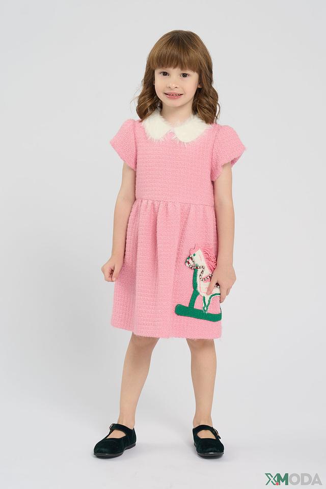 Розовое платье Choupette для девочки, украшенное аппликацией в виде лошадки. Модель выполнена из фактурной ткани с короткими рукавами и воротничком. Идеальный выбор для создания нежного и стильного образа. Состав: Состав_подкладка хлопок 94%, полиэстер 70%, шерсть 30%, Состав_подкладка полиуретан 6%