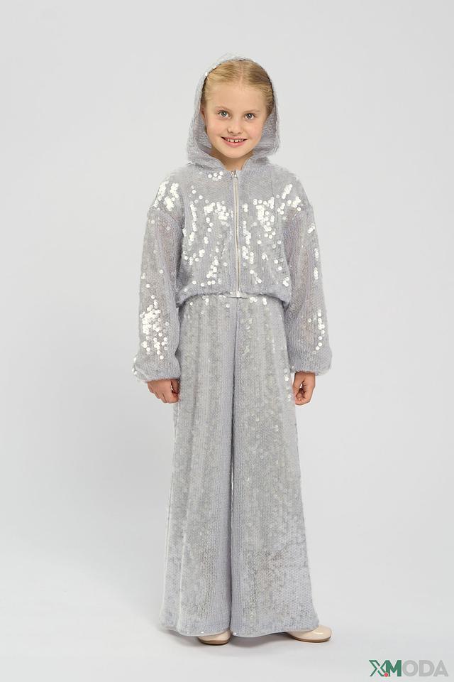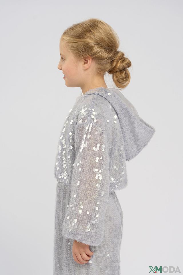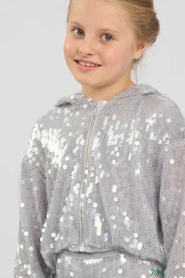Стильный жакет Choupette для девочки, серебристого цвета, полностью расшит пайетками и имеет удобный капюшон. Идеальный выбор для особых случаев и создания яркого образа. Состав: полиэстер 100%, Состав_подкладка модал 95%, Состав_подкладка полиуретан 5%