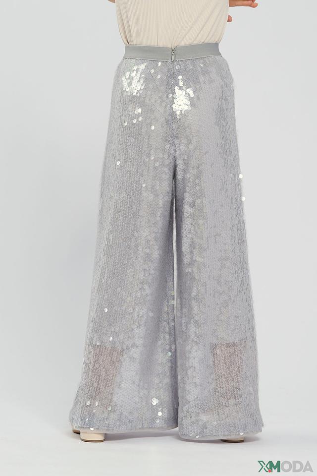 Стильные брюки от Choupette серебристого цвета, полностью расшитые пайетками, станут ярким дополнением к образу юной модницы. Модель отличается широким кроем и удобной посадкой. Состав: полиэстер 100%, Состав_подкладка модал 95%, Состав_подкладка полиуретан 5%
