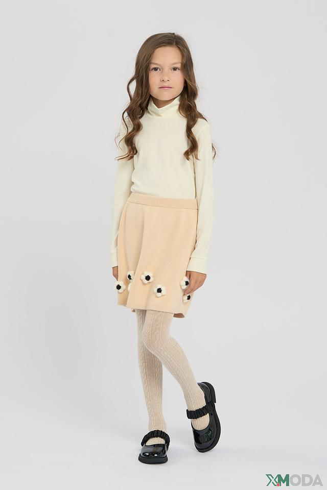 Юбка имеет удобный эластичный пояс, обеспечивающий комфортную посадку. Оригинальный декор в виде объёмных цветов придает образу игривость и неповторимость.