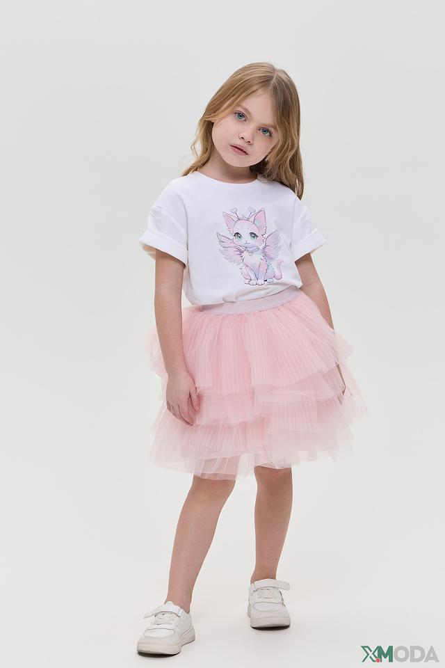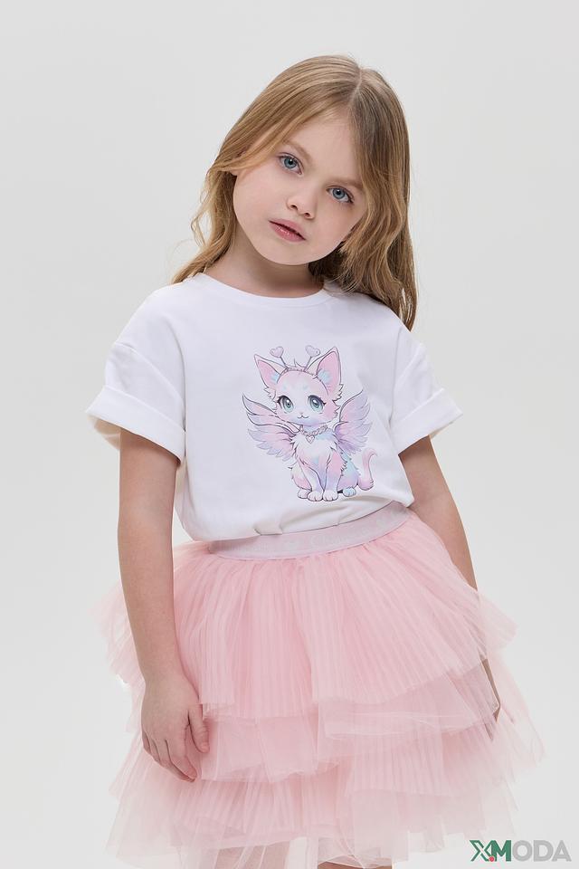 Эта футболка идеально подойдет для повседневной носки, прогулок и активных игр. Она легко сочетается с юбками, шортами и брюками, создавая разнообразные образы. Состав: 96% хлопок, 4% эластан.