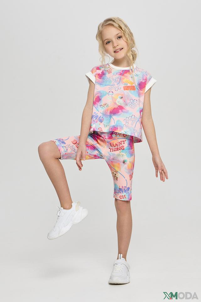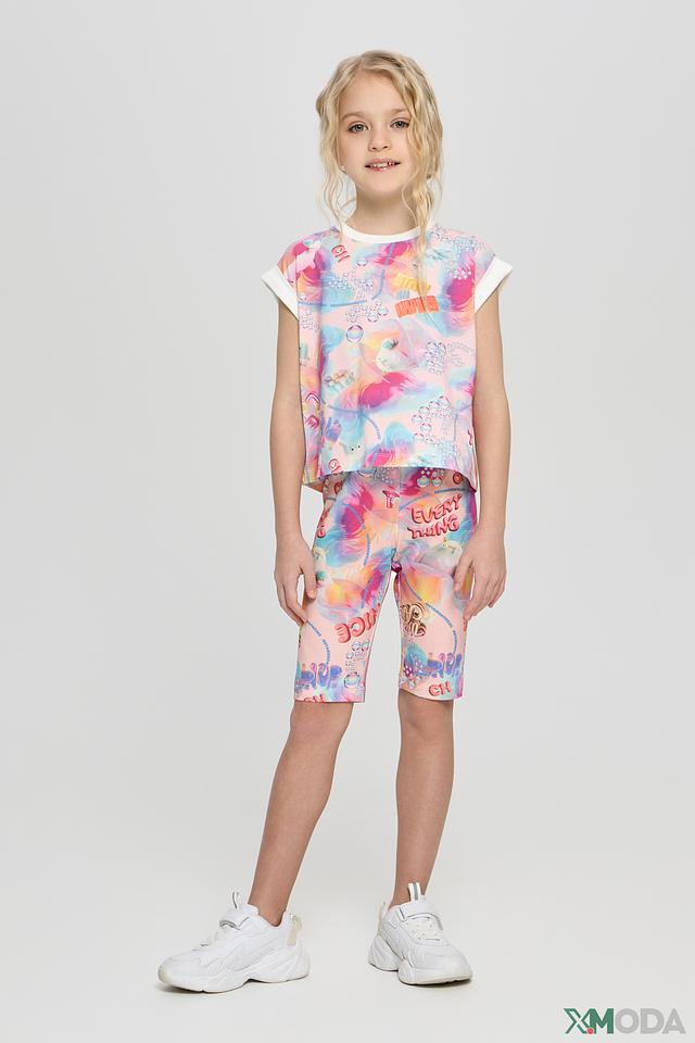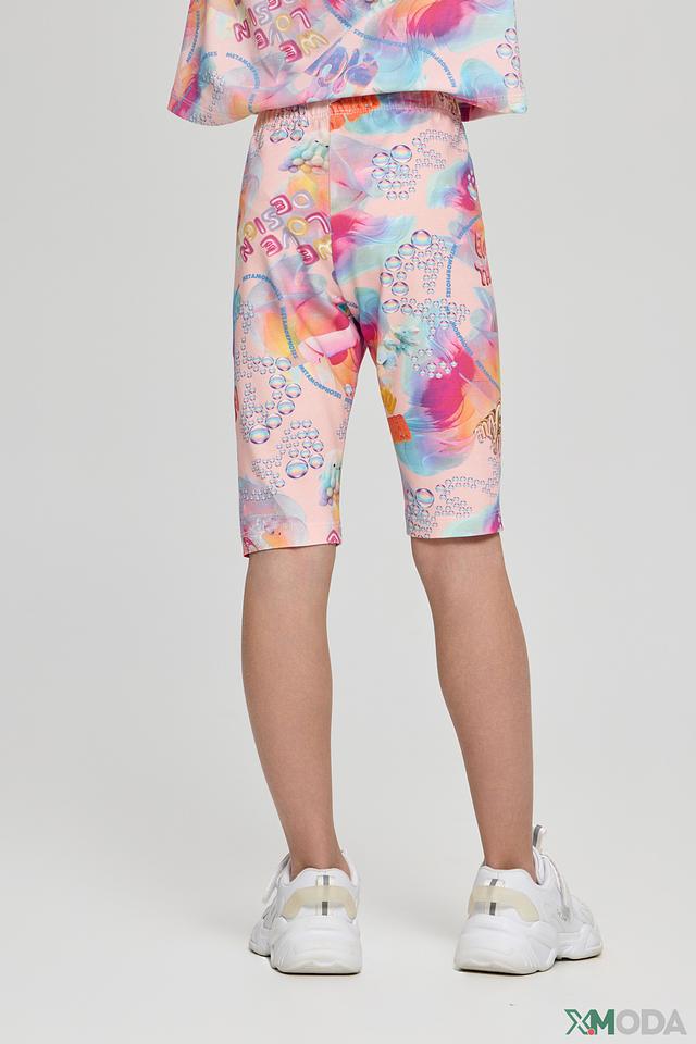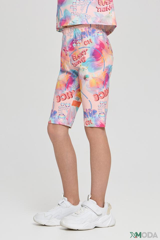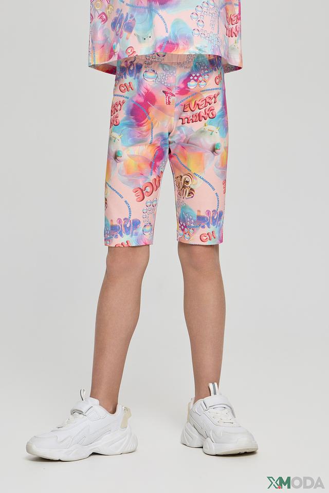 Дизайн брюк-шорт отличается ярким и запоминающимся принтом, выполненным в разнообразной цветовой гамме. Такой рисунок добавит образу девочки игривости и индивидуальности.