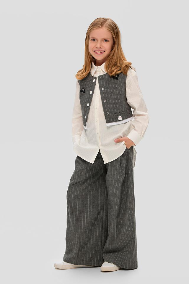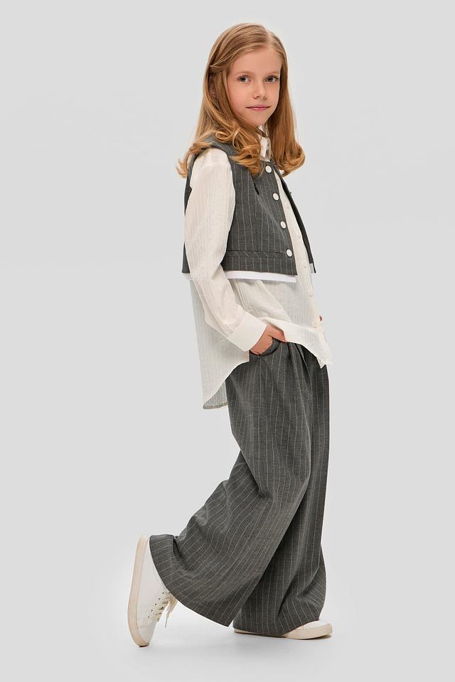 Представляем модные брюки от бренда Choupette, выполненные в сером цвете с вертикальной полоской. Эта модель станет прекрасным выбором для создания стильного и комфортного образа вашей девочки.