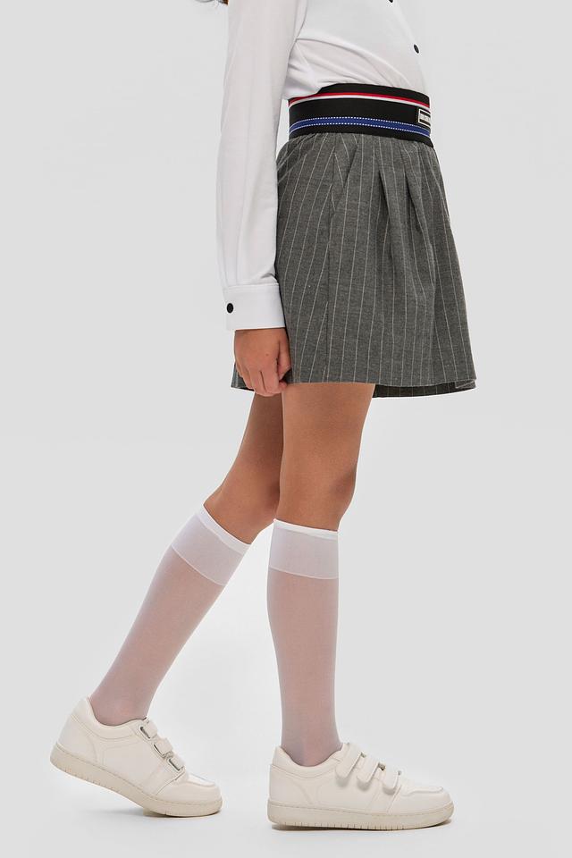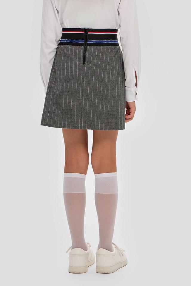 Стильная юбка Choupette серого цвета с полоской станет отличным дополнением к школьному гардеробу девочки. Модель выполнена из приятной на ощупь ткани и имеет удобный эластичный пояс. Состав: Состав_подкладка вискоза 100%, полиэстер 64%, вискоза 32%, полиуретан 4%