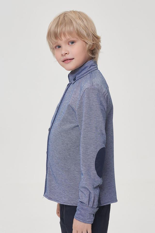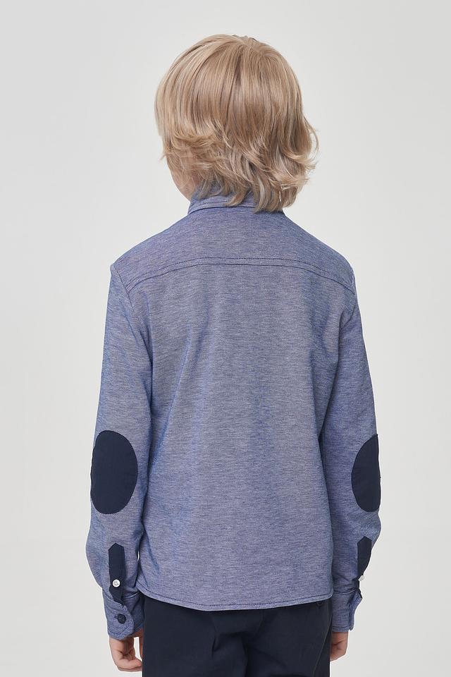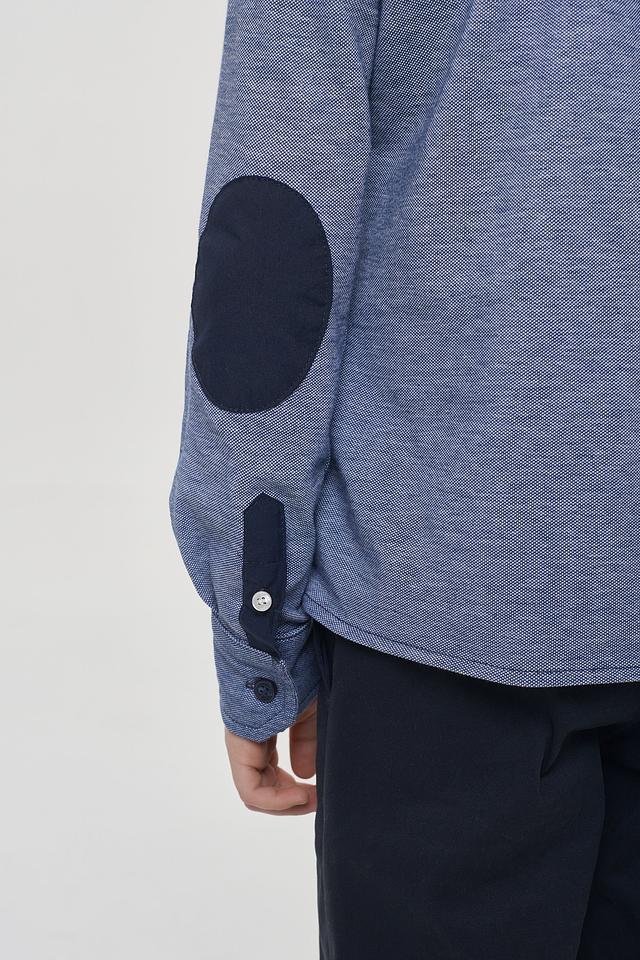 Классический крой и стильный синий цвет делают эту детскую рубашку универсальной для любого гардероба. Аккуратный воротник на пуговицах и контрастные налокотники добавляют оригинальности и изысканности.