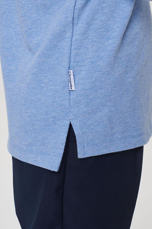 Голубое поло Choupette с длинным рукавом – удобная и стильная одежда для мальчика. Модель выполнена из мягкого хлопка с добавлением эластана, что обеспечивает комфорт и свободу движений. Воротник и планка с пуговицами выполнены в тёмно-синем цвете. Состав: хлопок 95%, эластан 5%