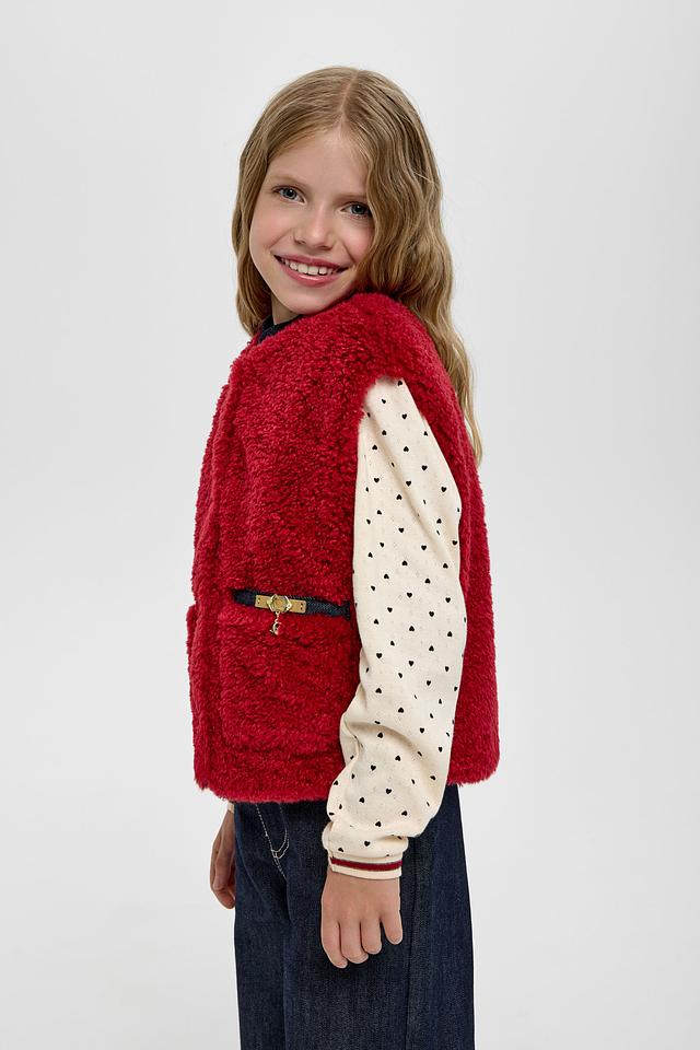 Этот стильный жилет от Choupette станет прекрасным выбором для создания уютного и модного образа вашей девочки. Жилет выполнен в насыщенном бордовом цвете из приятного на ощупь материала, напоминающего овечью шерсть.