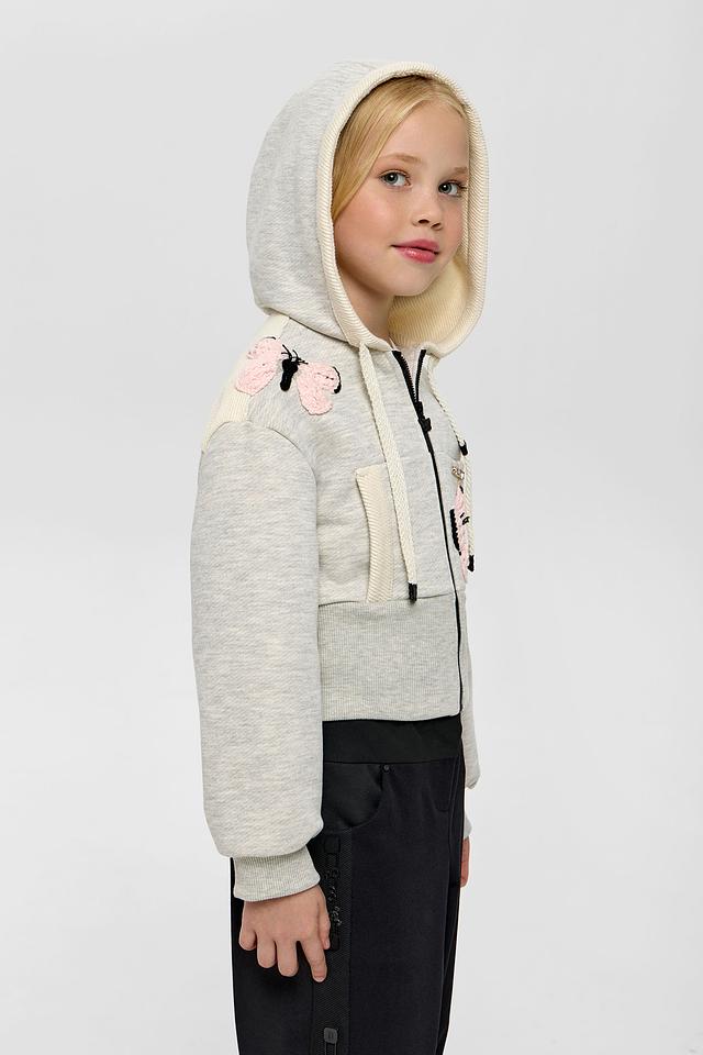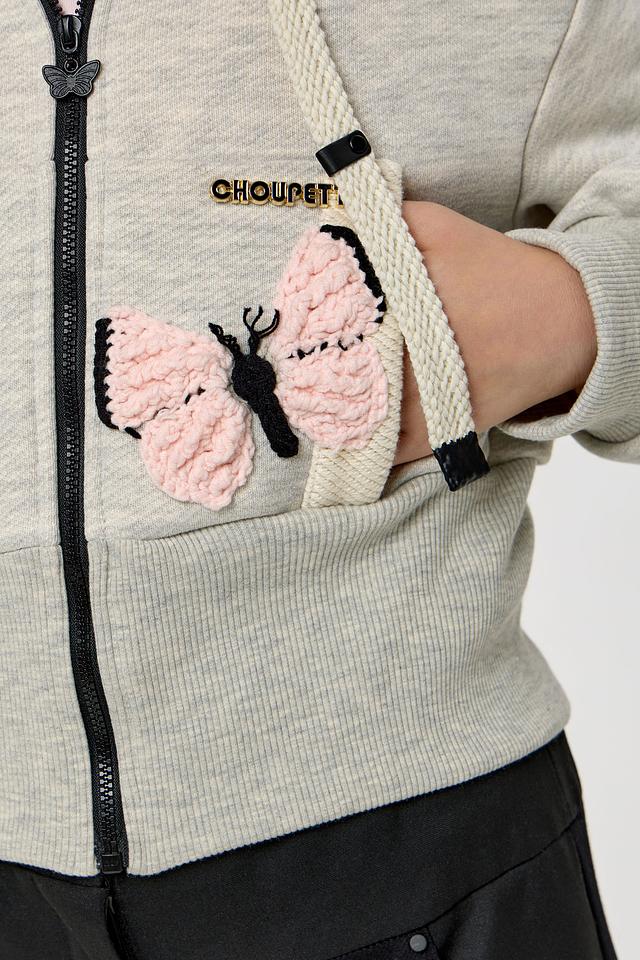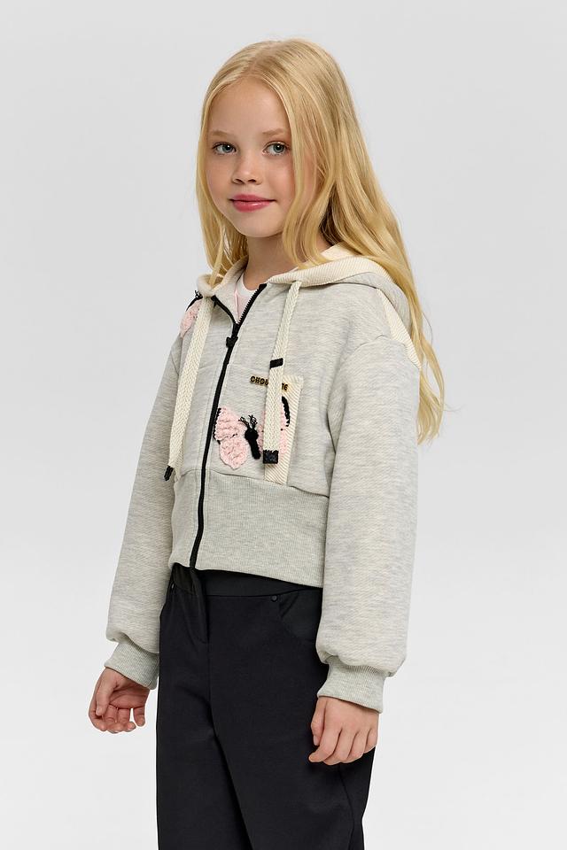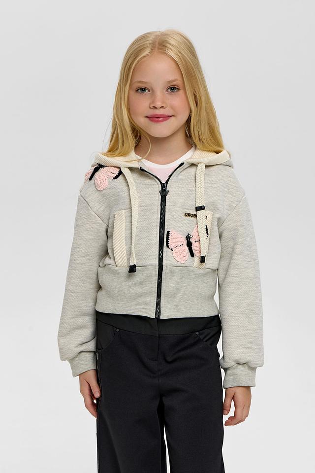 Эта очаровательная толстовка от Choupette станет любимой вещью в гардеробе вашей девочки. Модель выполнена в нежном сером цвете и украшена яркой аппликацией в виде бабочек, что придает ей игривый и девчачий вид.