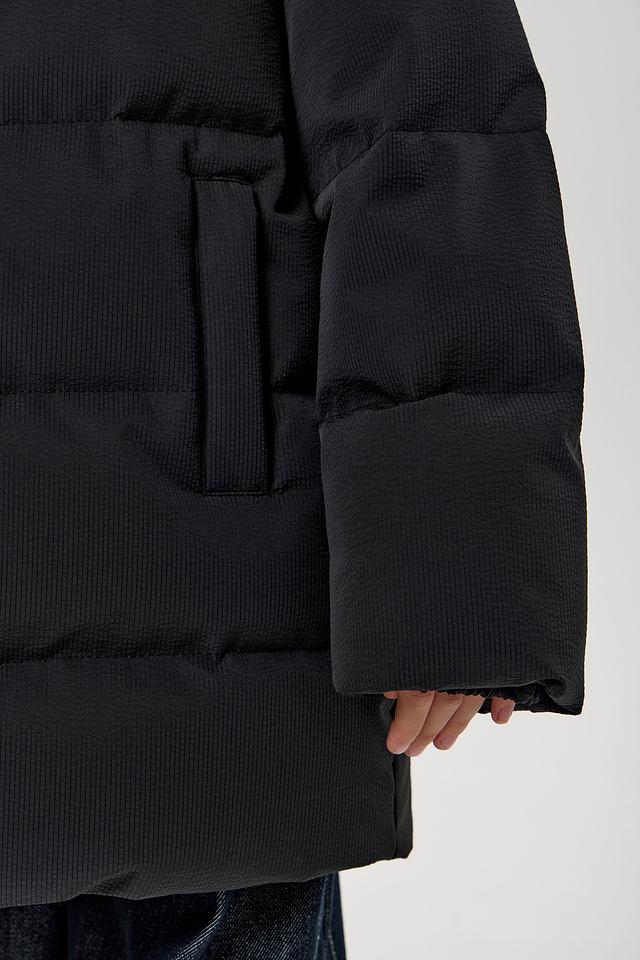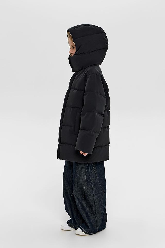 Пуховик имеет удобный капюшон, который защитит от ветра и снега. Застежка на кнопки позволяет быстро и легко надевать и снимать куртку. Стеганая текстура придает изделию стильный и современный вид.