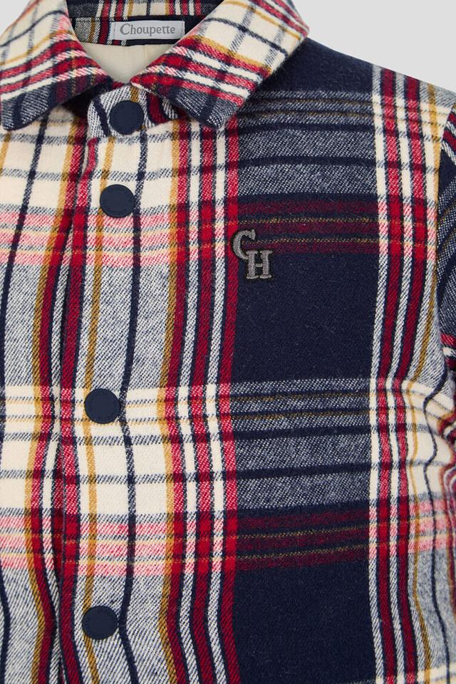 Представляем удобный и стильный комбинезон от бренда Choupette. Модель выполнена в классической клетчатой расцветке, сочетающей синий, красный, белый и бежевый цвета.