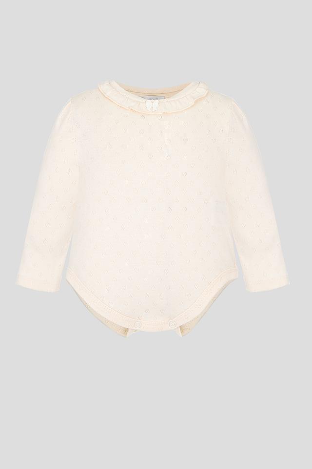 Бежевое боди Choupette для девочки выполнено из 100% хлопка с нежным жатым узором. Модель дополнена оборкой и бантиком на горловине. Удобный и практичный выбор для маленьких модниц. Состав: хлопок 100%
