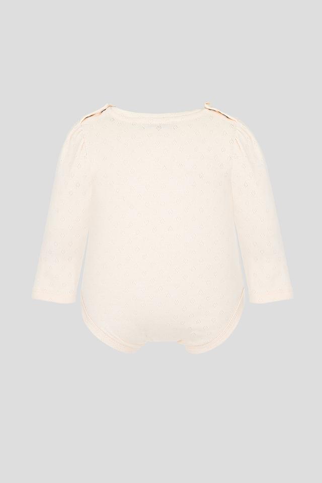 Боди изготовлено из 100% хлопка, что обеспечивает максимальный комфорт и позволяет коже малыша дышать. Текстура ткани имеет жатый узор, придающий изделию изысканность. Длинные рукава обеспечат тепло и уют в прохладную погоду.