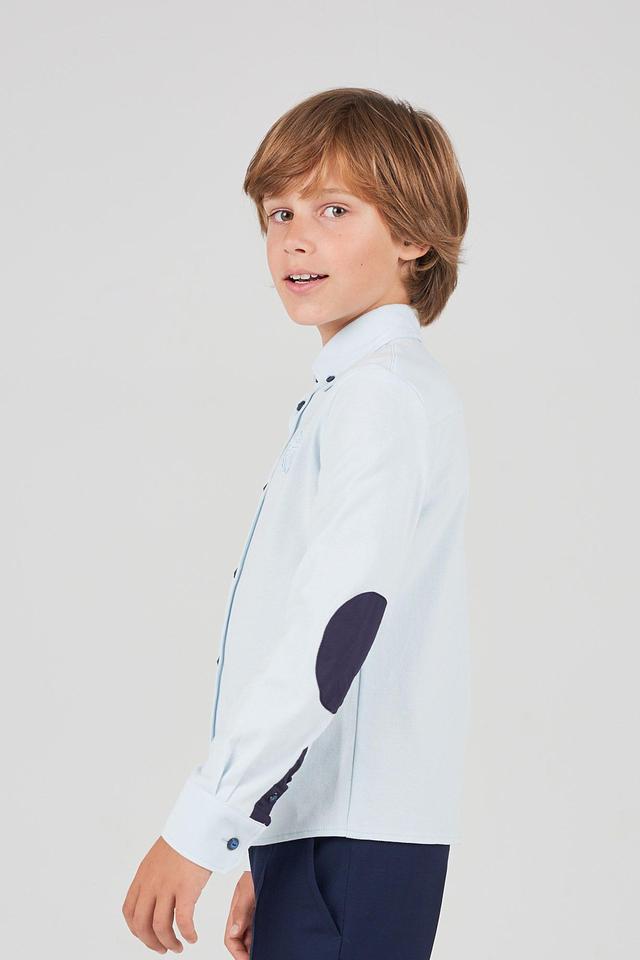 Голубая рубашка Choupette для мальчика с длинным рукавом и накладными карманами. Изготовлена из мягкого хлопка с небольшим добавлением полиуретана для комфорта и долговечности. Стильный и удобный вариант для повседневной носки. Состав: хлопок 95%, полиуретан 5%