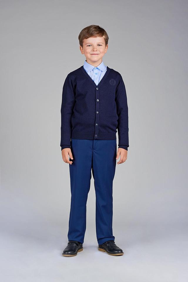 Синий кардиган Choupette для мальчика, выполнен из мягкого трикотажа с декоративной вышивкой. Удобный и стильный выбор для школьной формы или повседневной носки. Состав: хлопок 53%, вискоза 42%, шелк 5%