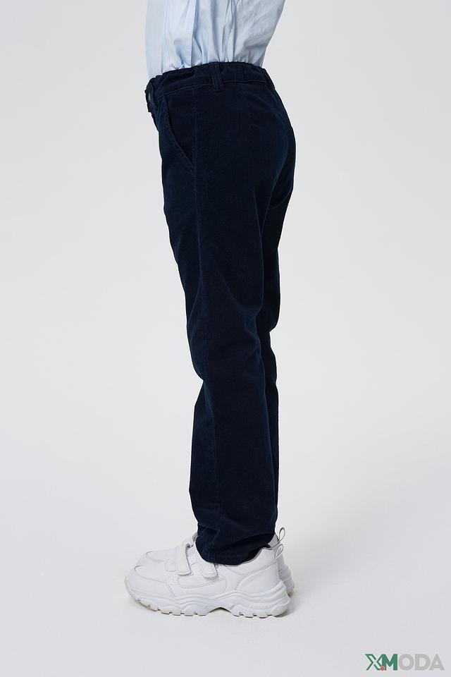 Классический синий цвет делает эти брюки универсальными и легко сочетаемыми с различными элементами одежды. Прямой крой обеспечивает удобную посадку, а эластичный пояс гарантирует комфорт в течение всего дня.
