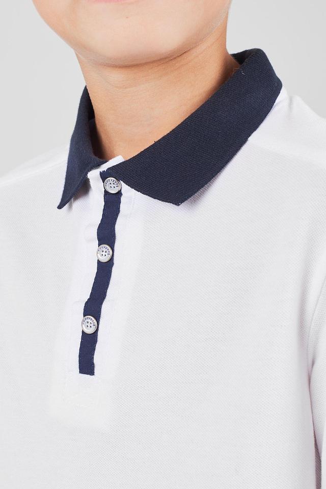 Белая рубашка-поло от Choupette – стильный и комфортный выбор для мальчика. Модель выполнена из мягкого хлопка с добавлением полиуретана, имеет классический крой и короткий рукав, а воротник и планка застежки выполнены в контрастном синем цвете. Состав: хлопок 95%, полиуретан 5%