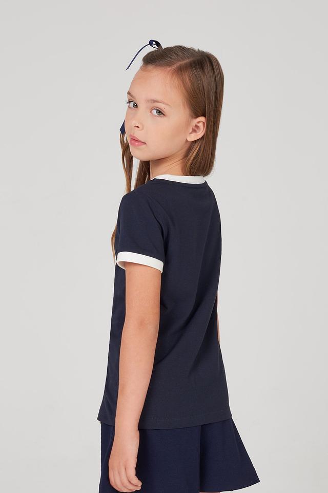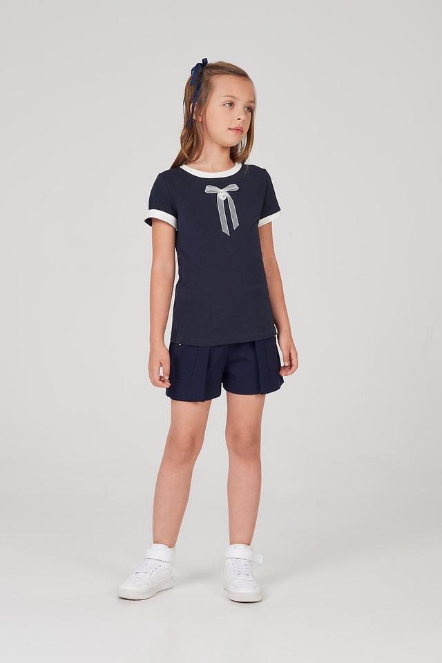 Детская футболка Choupette тёмно-синего цвета с декоративным бантом – стильный и комфортный выбор для маленьких модниц. Изготовлена из мягкого хлопка с добавлением полиуретана для лучшей посадки и долговечности. Состав: хлопок 90%, полиуретан 10%