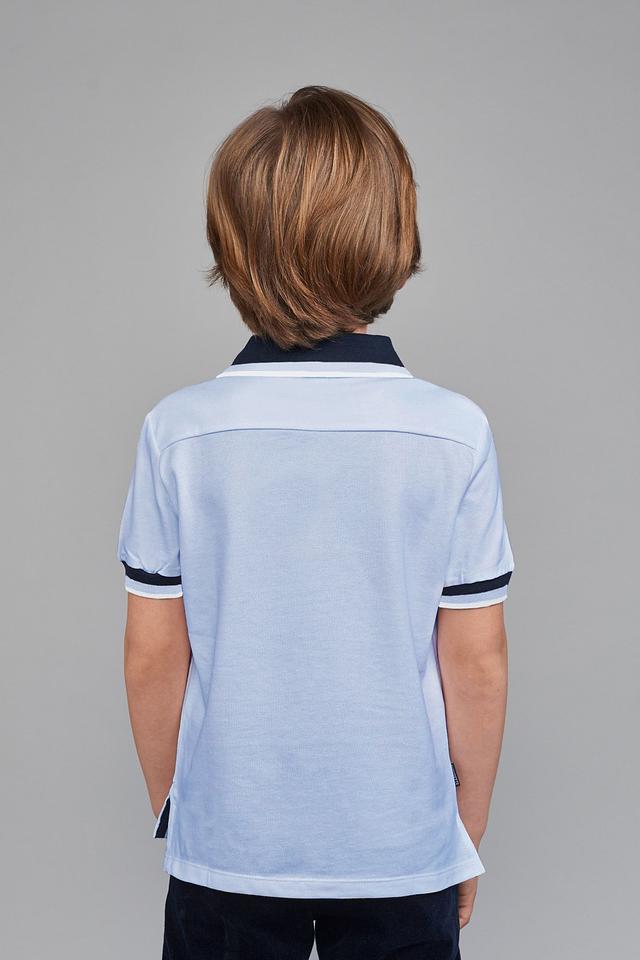 Нежный голубой цвет рубашки легко сочетается с другими элементами одежды, позволяя создавать разнообразные образы – от повседневных до более нарядных. Эта рубашка-поло идеально подходит для школы, прогулок и других активностей.