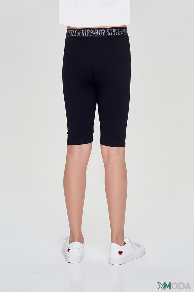 Шорты имеют классический крой и удобную посадку. Широкий пояс с эластичной резинкой обеспечивает надежную фиксацию. Особый акцент – декоративный пояс с надписью и стразами, который добавляет образу яркости и стиля.
