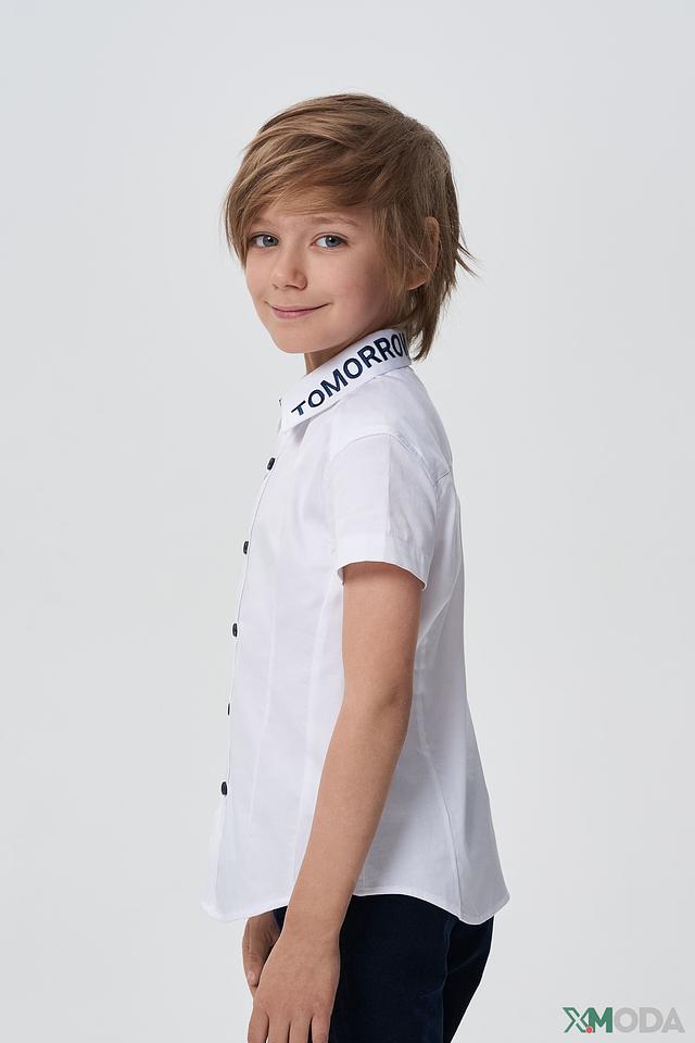 Рубашка имеет короткие рукава и удобный крой, обеспечивающий свободу движений. Особый акцент сделан на воротнике, который украшен надписью "SNOW TOMORROW", добавляя образу оригинальность и индивидуальность.