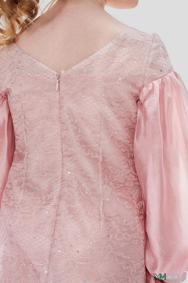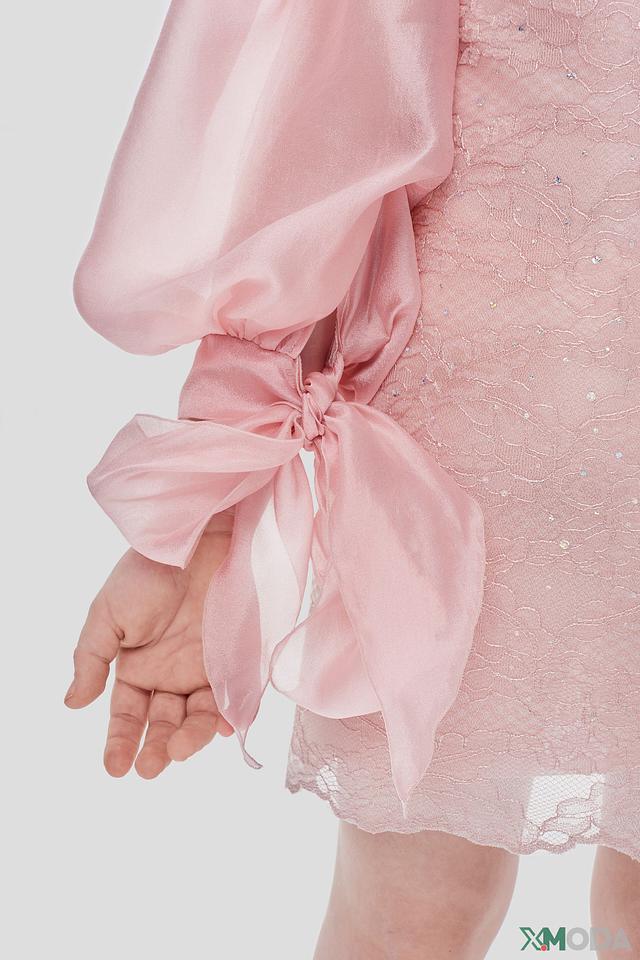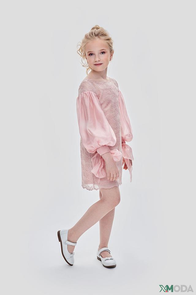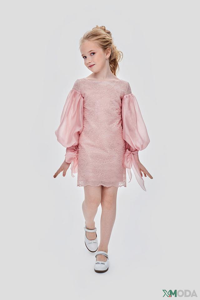 Верх платья выполнен из изящного кружева, украшенного небольшими блестками, что придает ему праздничный вид. Подкладка выполнена из 100% хлопка, обеспечивая комфорт и приятные ощущения на коже. Рукава платья – пышные, выполнены из полупрозрачной ткани и дополнены очаровательными бантиками.