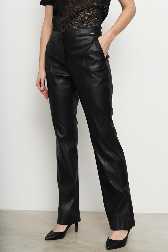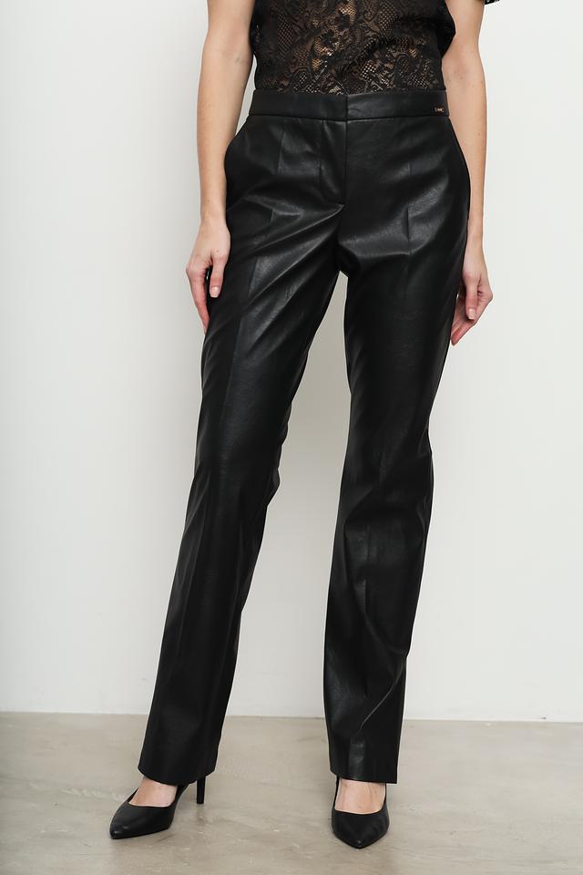 Чёрные брюки от Cinque из высококачественной экокожи — стильное и комфортное решение для создания современного образа. Прямой крой и эластичный пояс обеспечивают удобную посадку по фигуре. Состав: полиэстер 100%