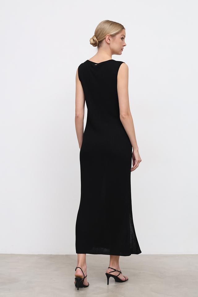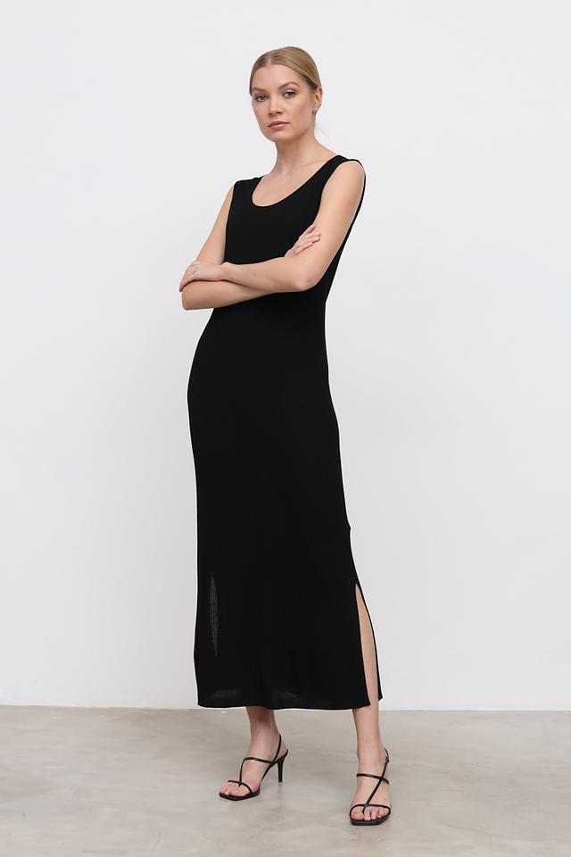 Длина миди и небольшой разрез сзади добавляют образу изысканности. Текстура ткани – мелкая вязка. Платье идеально подходит для создания как повседневных, так и вечерних образов.