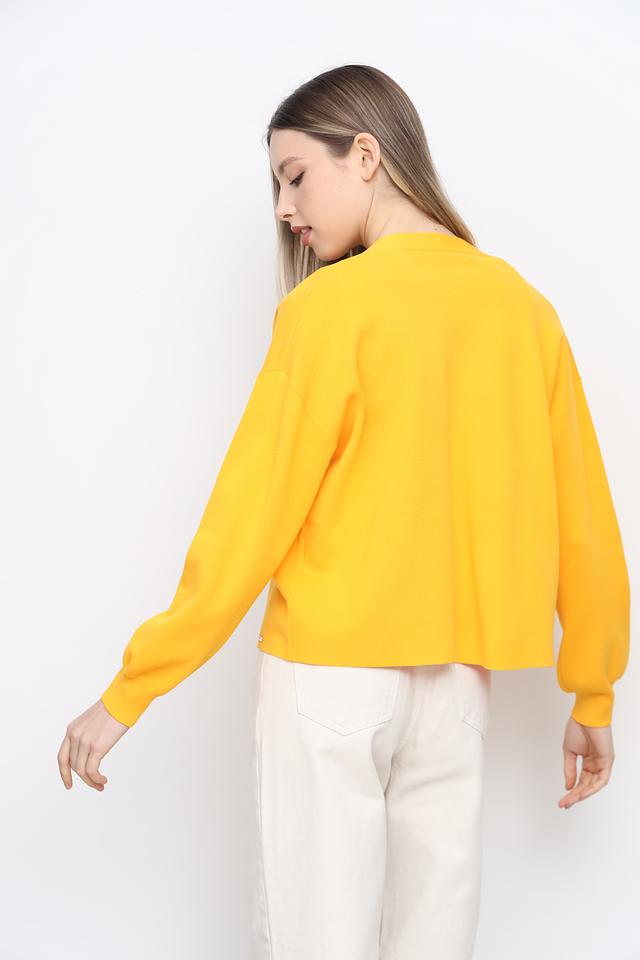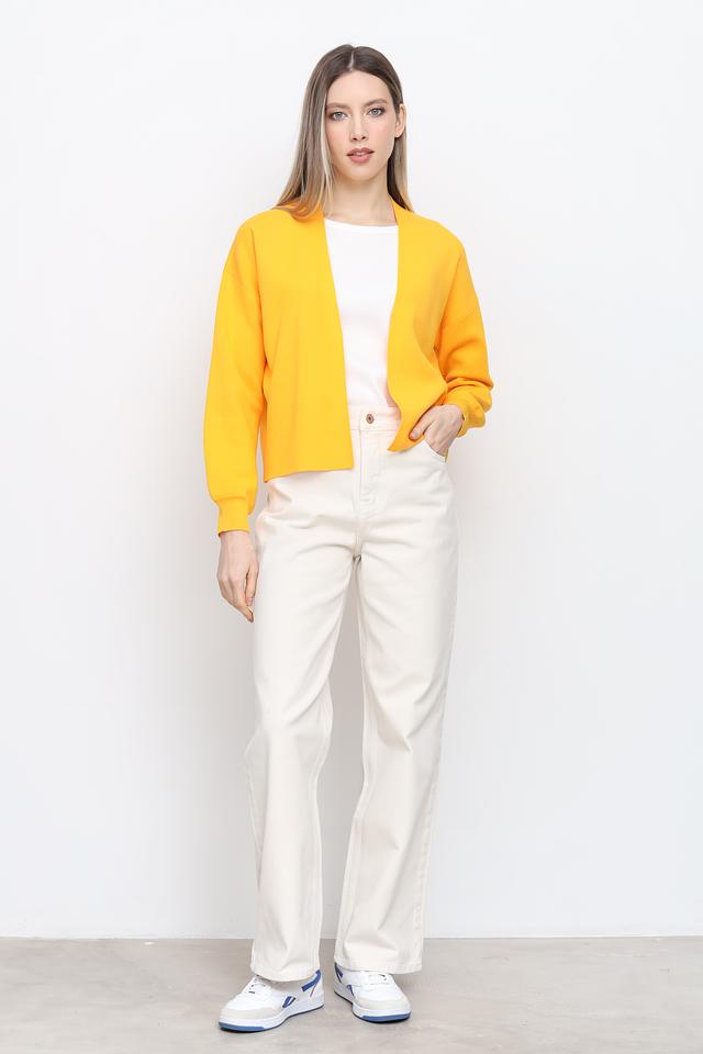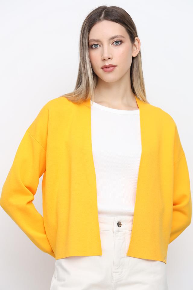 Яркий горчичный цвет добавит вашему образу свежести и оригинальности. Этот кардиган идеально сочетается с джинсами, брюками, юбками и платьями. Состав: 80% вискоза, 20% полиамид.