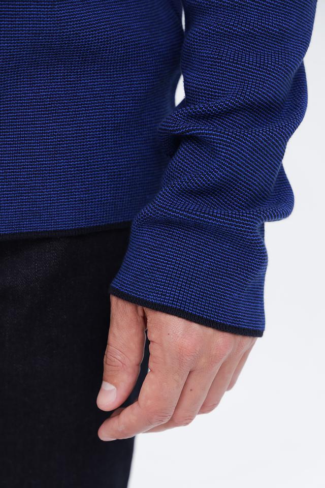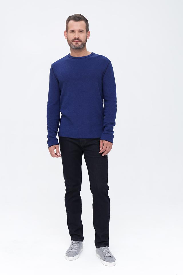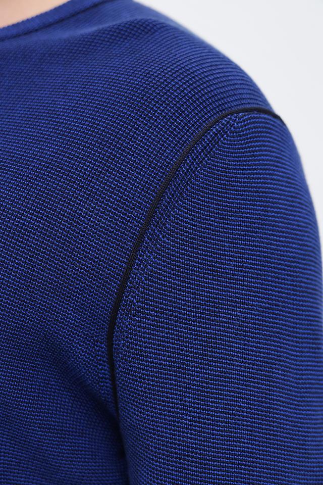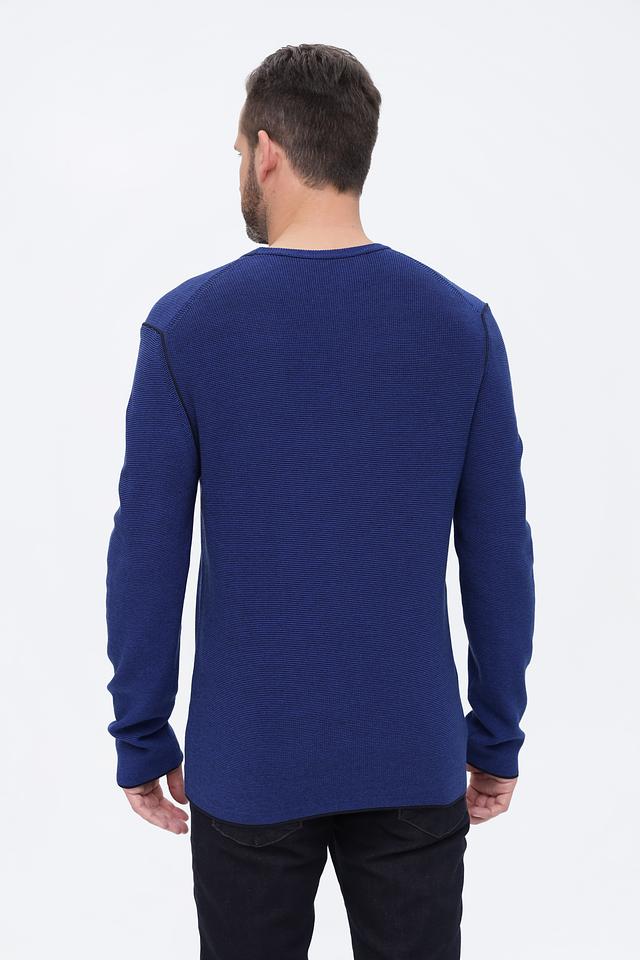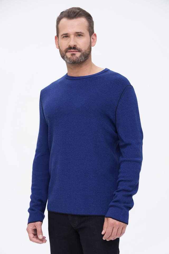 Мужской джемпер Cinque синего цвета с текстурной вязкой и черной отделкой горловины. Изготовлен из мягкого и приятного к телу сочетания хлопка и полиакрила, обеспечивающего комфорт и долговечность. Состав: хлопок 50%, полиакрил 50%
