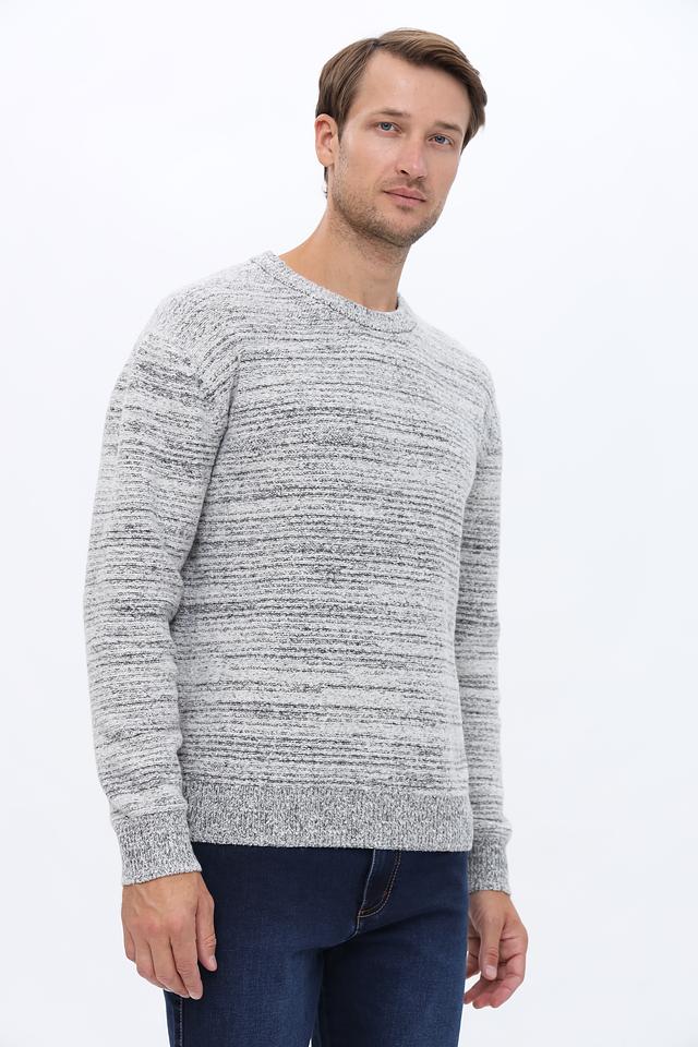 Текстура джемпера выполнена в виде крупной вязки, что придает ему современный и стильный вид. Этот джемпер идеально подойдет для создания повседневных образов, его можно сочетать с джинсами, брюками чинос или шортами.