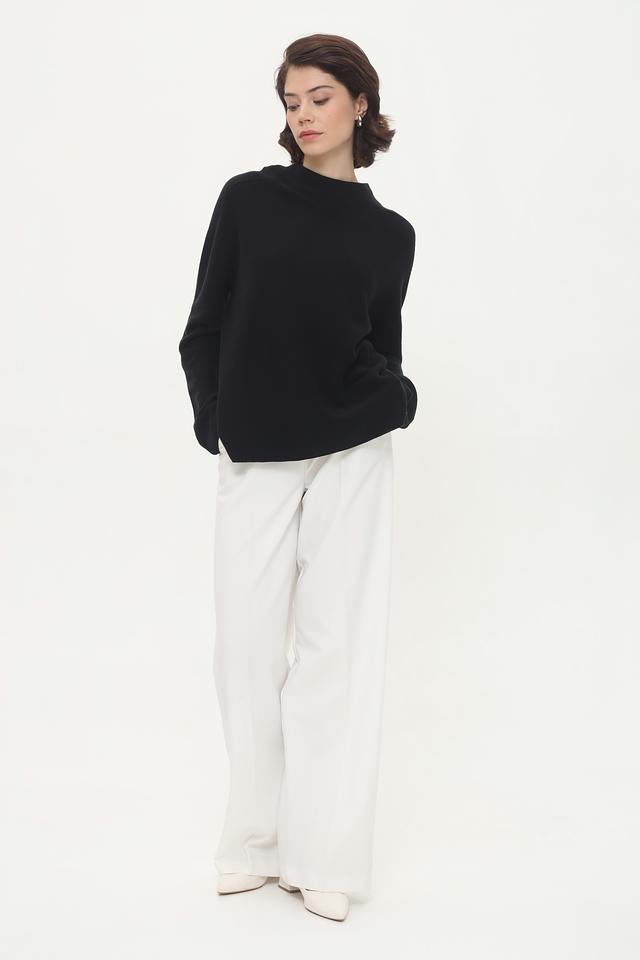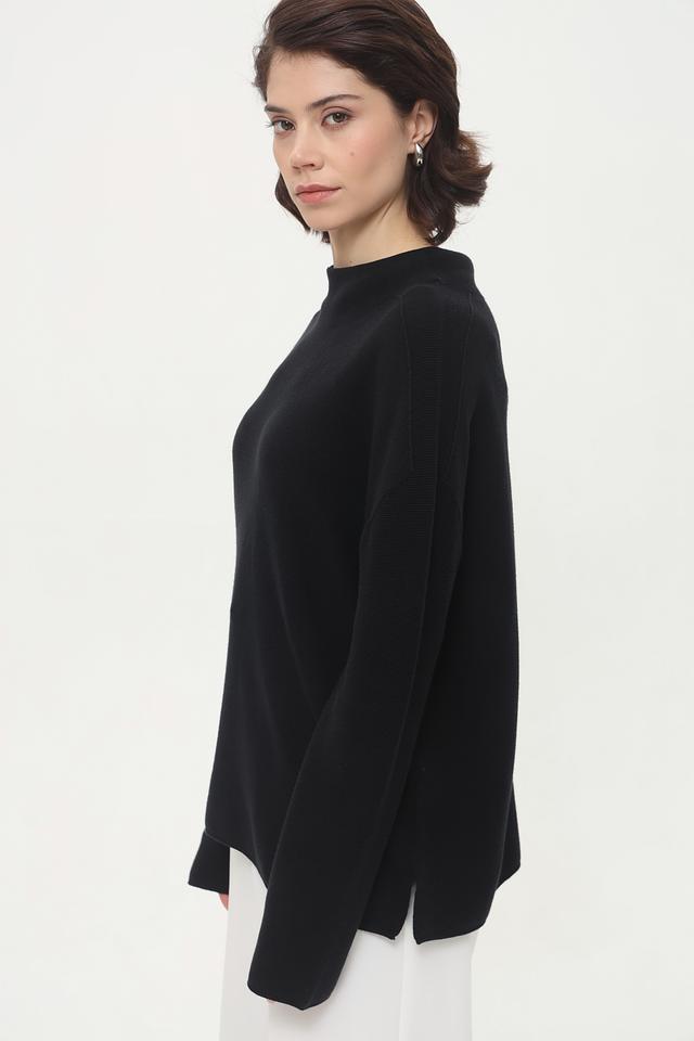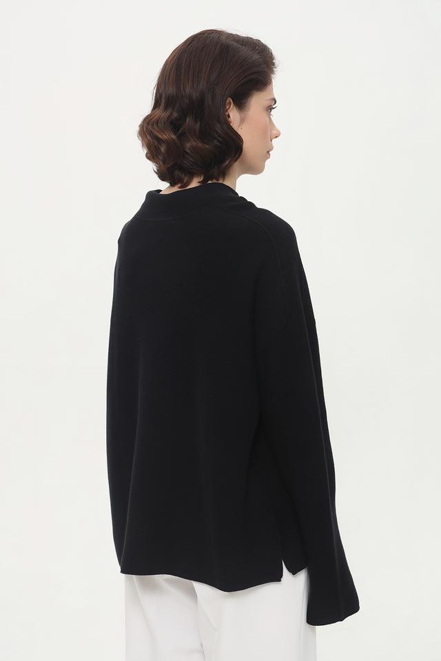 Универсальный чёрный цвет позволяет легко комбинировать этот пуловер с брюками, юбками и джинсами, создавая разнообразные и стильные образы.