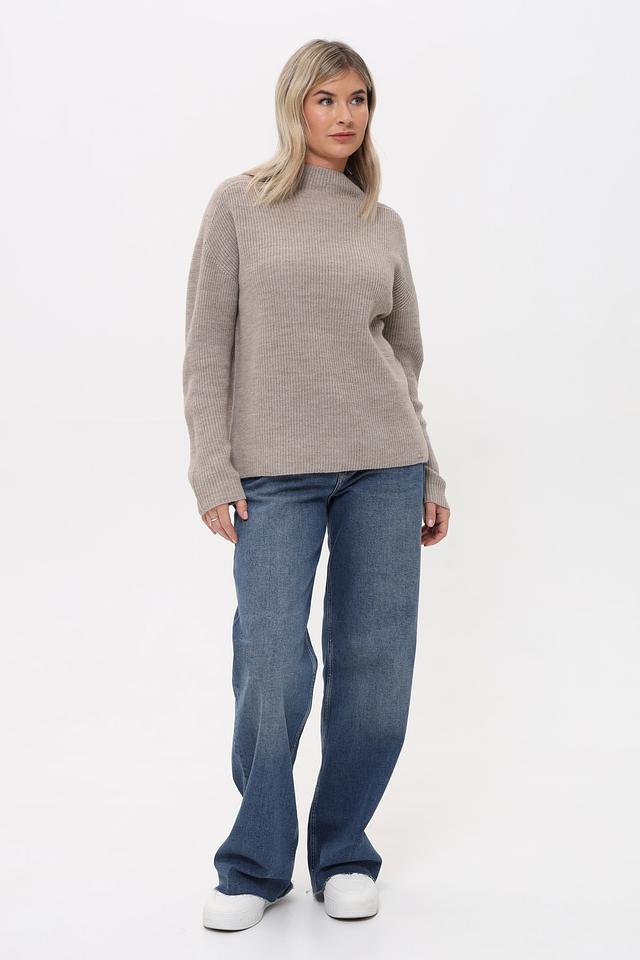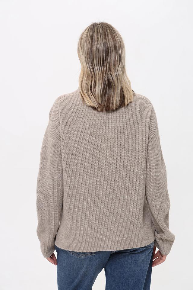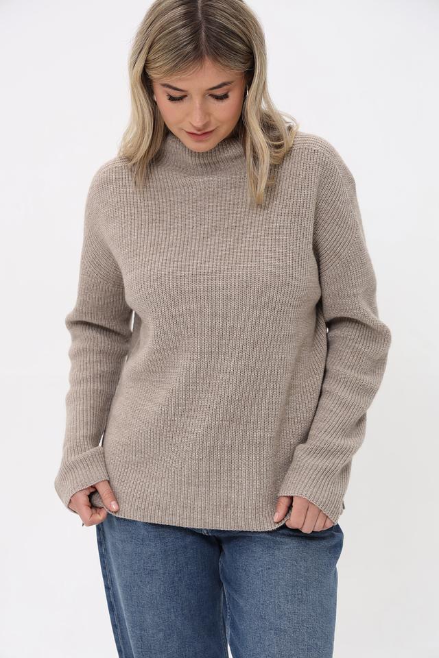 Пуловер имеет высокий горл, который не только согреет в прохладную погоду, но и добавит элегантности вашему образу. Свободный крой обеспечивает комфорт и свободу движений, а длинные рукава делают его подходящим для ношения в течение всего года.