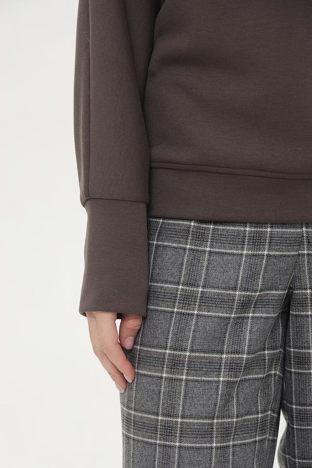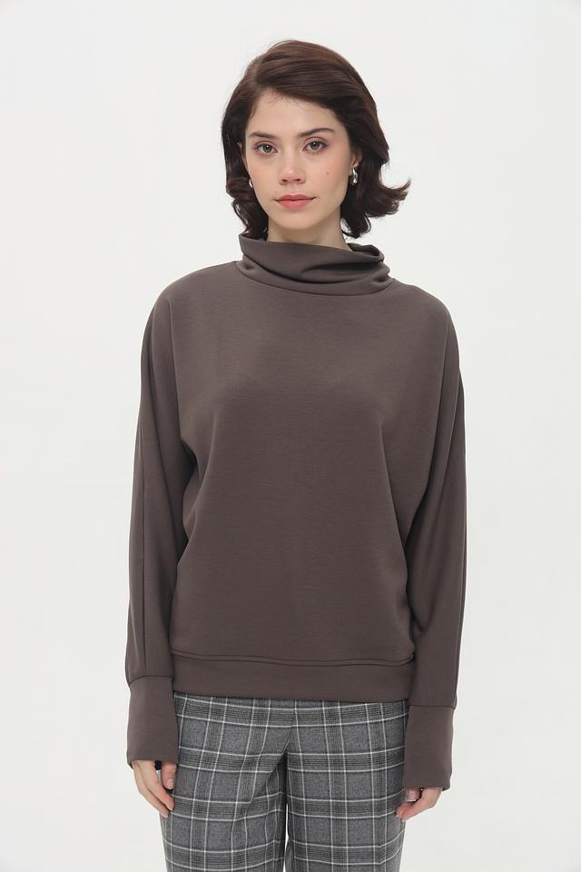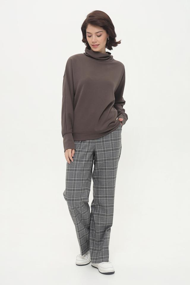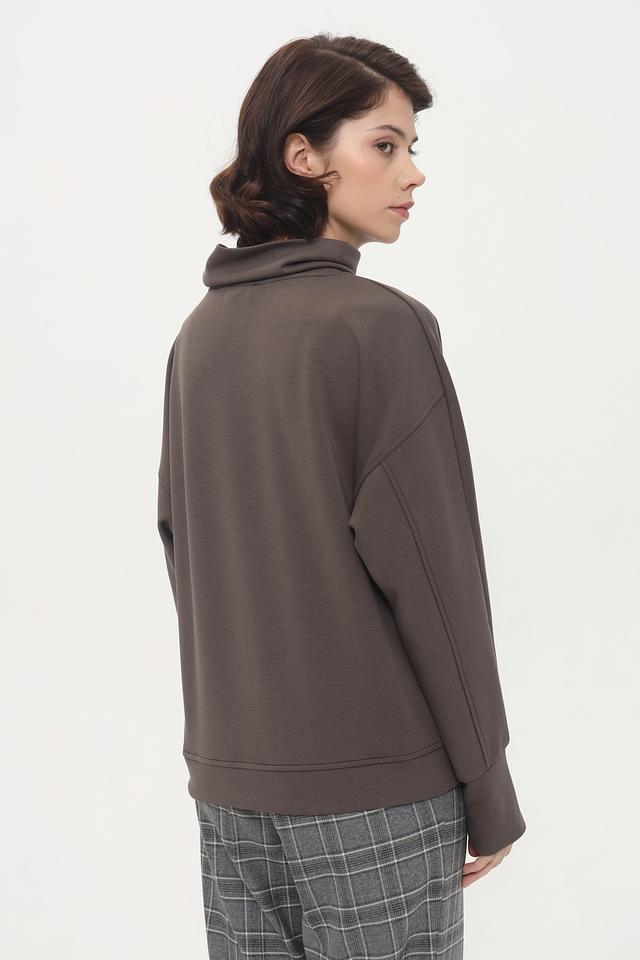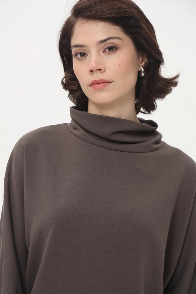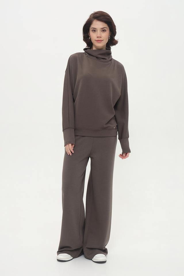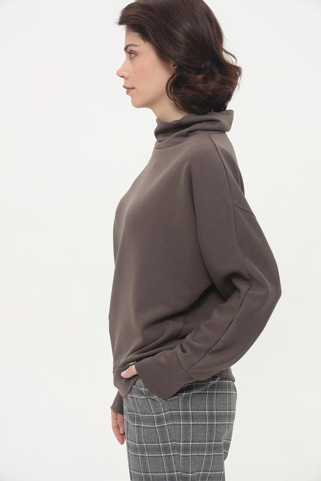 Модель имеет высокий горл, который не только добавляет элегантности, но и защищает от холода. Свободный крой обеспечивает комфорт и свободу движений, а рукава слегка спущены, что придает образу непринужденность.