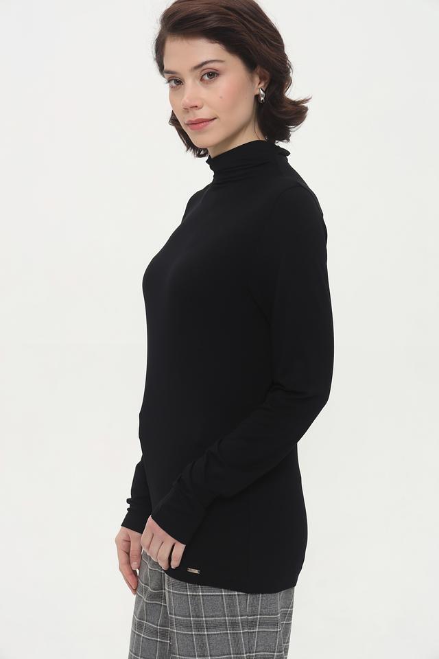 Чёрный пуловер от Cinque с высоким горлом – это универсальная база для создания стильных образов. Изготовлен из мягкой вискозы с добавлением эластана, обеспечивающего комфортную посадку и свободу движений. Состав: вискоза 95%, эластан 5%